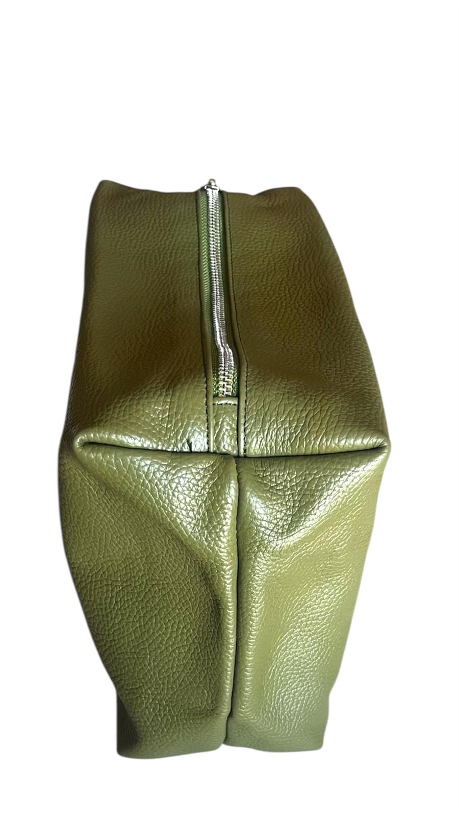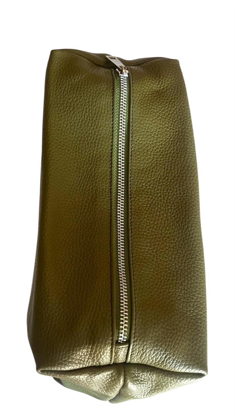 BORSELLO IN VERA PELLE DI COLORE OLIVA DOTATA DI CHIUSURA A ZIP