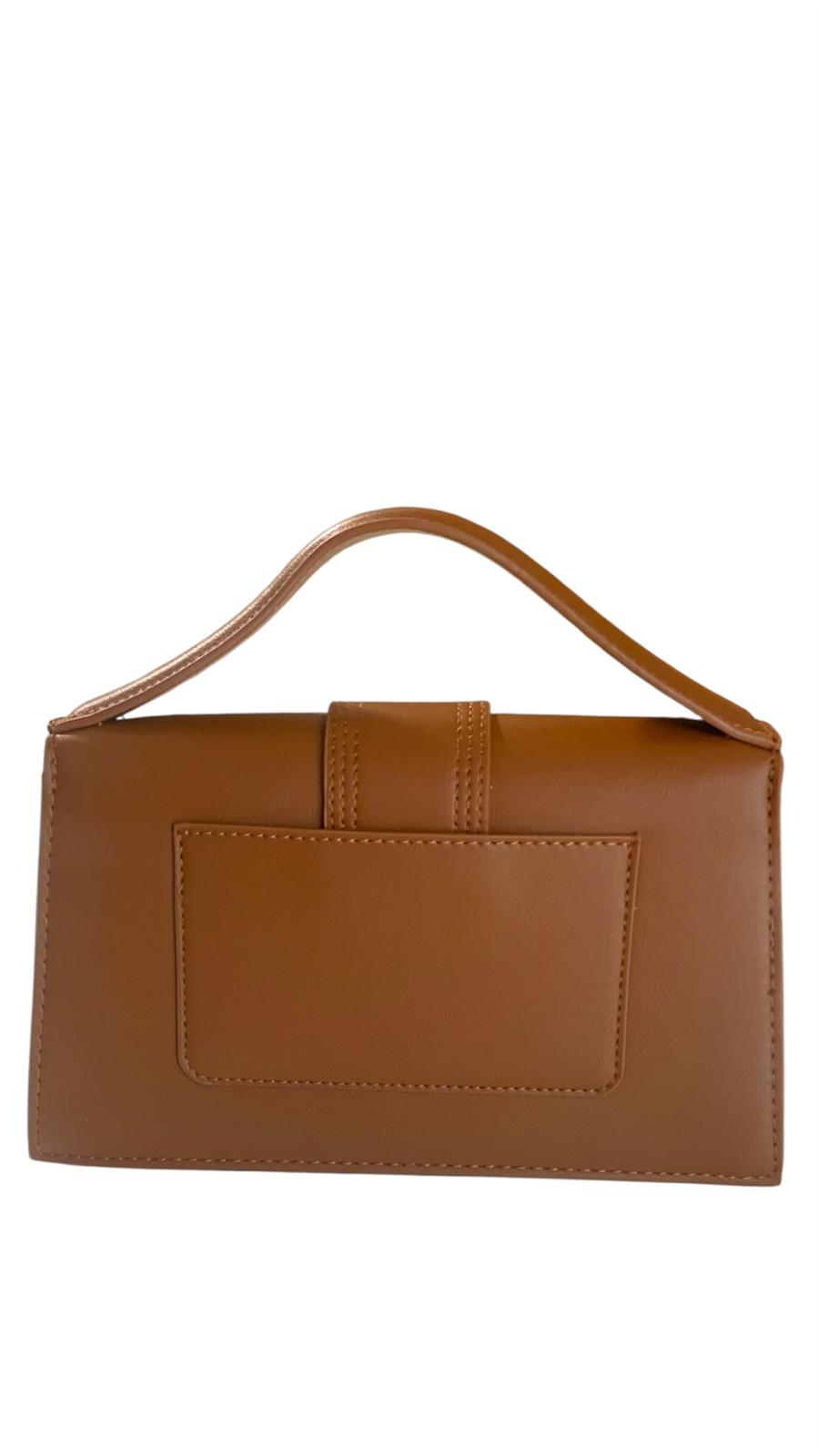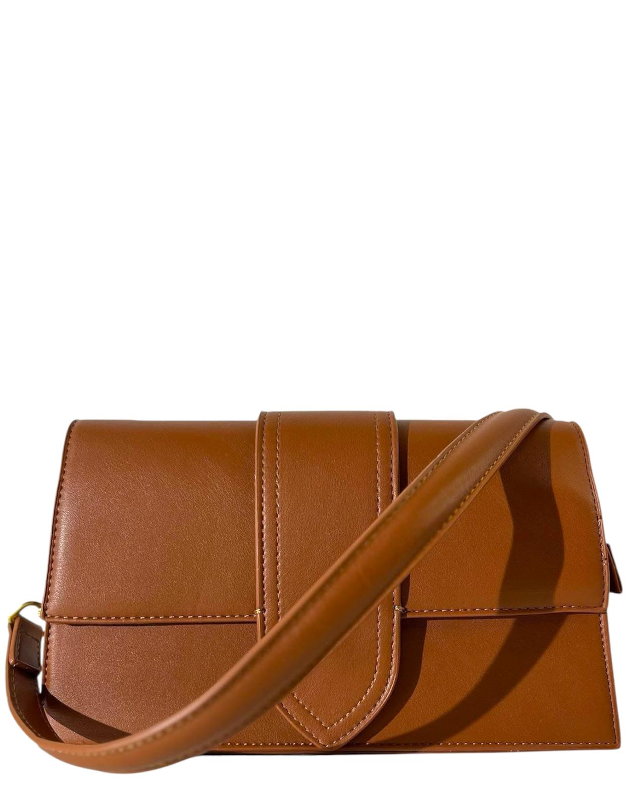 BORSA IN PELLE DI COLORE CUOIO CON CHIUSURA MAGNETICA, DOTATA DI TRACOLLA E SONO PRESENTI DUE TASCHINE ALL'INTERNO DI CUI UNA CON CHIUSURA CERNIERA