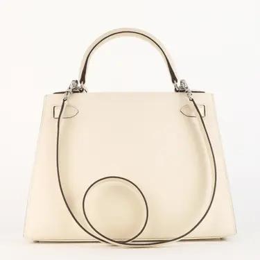 BORSA A MANO IN PELLE,LA CHIUSURA DELLA PATTA E' CON GANCIO GIREVOLE E LACCETTI ED E' PRESENTE UNA TASCHINA INTERNA CON CHIUSURA A CERNIERA E UNO SCOMPARTO IN PELLE.